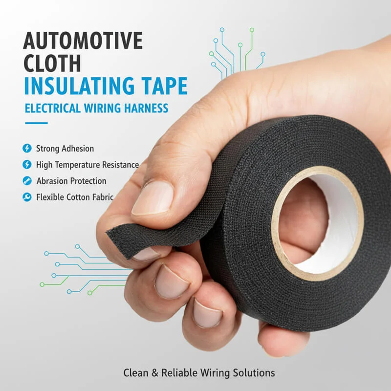 شريط قماشي عازل للأسلاك عالي الجودة مصمم خصيصًا لعزل وربط أسلاك السيارات والضفائر الكهربائية، يتميز بقوة لاصقة فائقة ومقاومة ممتازة لدرجات الحرارة المرتفعة والمنخفضة، مما يجعله الحل المثالي لأعمال الصيانة الاحترافية.