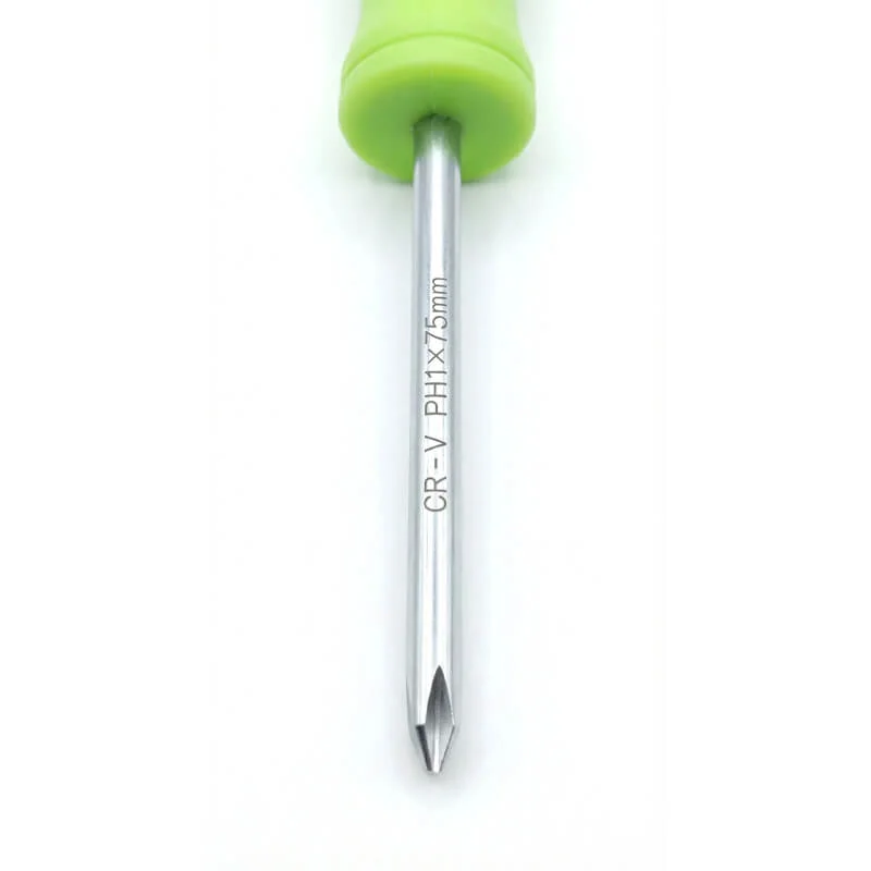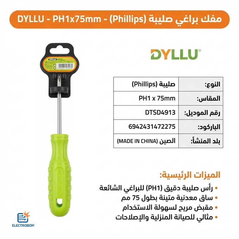 يأتي مفك DYLLU بمقاس الرأس الشائع PH1 وطول ساق معدنية 75 مم ، مما يجعله مثاليًا للتعامل مع البراغي الصغيرة والمتوسطة في الأجهزة المنزلية والإلكترونية.