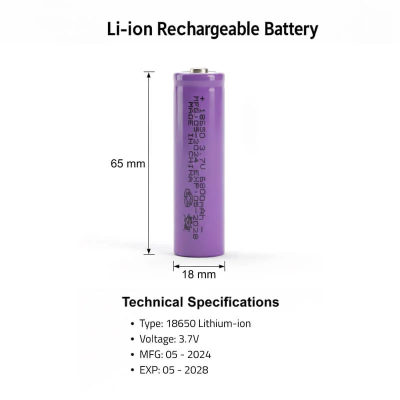 - حجم البطارية: الطول 67 ملم، القطر 18 ملم