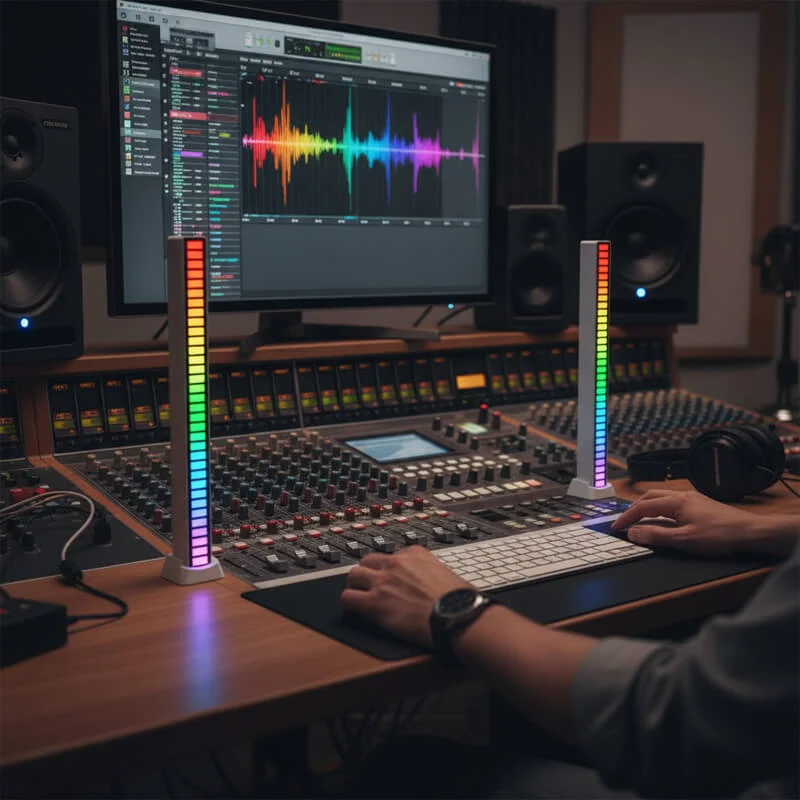 - الاستوديوهات المنزلية (Home Studios): ضعه كـ "مؤشر طيف صوتي" مرئي أثناء توزيع الأغاني والمقاطع الصوتية لتشعر بنبض التراكات.
